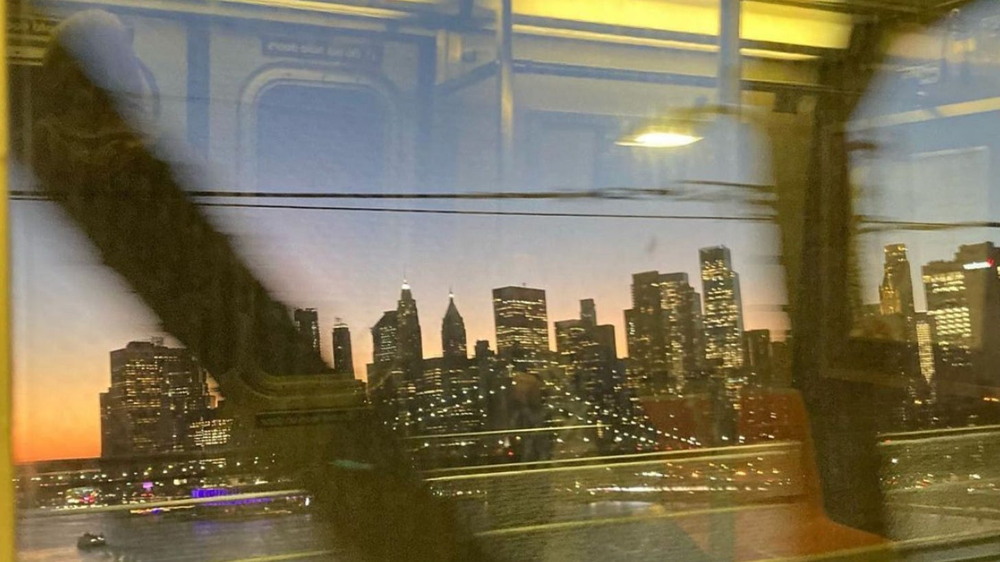 As the train pulled into Canal Street, “Half Light I” by Arcade Fire came on in my headphones. In that moment, sleep-deprived and a little out of it, it sounded just right. The song kept building as we moved on and just as it reached its peak, everything opened up onto that incredible view of Manhattan you get as the train crosses the bridge into Brooklyn. (If you’ve ever taken the Q, you know exactly what I’m talking about.) The timing felt almost unreal, like the whole journey hit in perfect sync with the music.